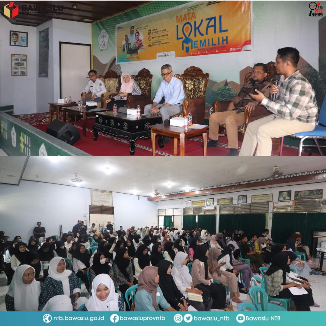Pemuda.co.id, MATARAM – Bawaslu NTB hadir dalam kegiatan Mata Lokal Memilih di Kampus Universitas Nahdatul Ulama (UNU) NTB, Kamis (18/01/2024).