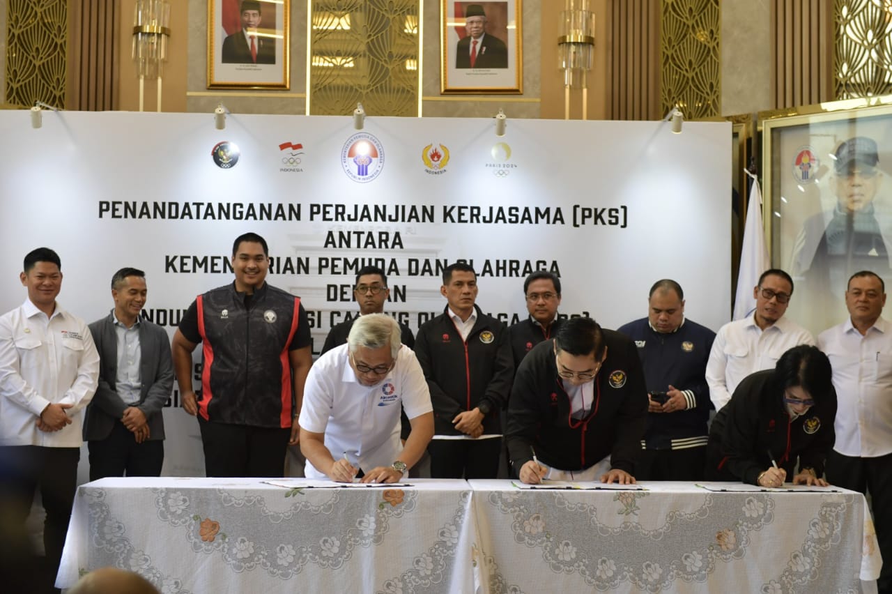 Penandatangan ini dihadiri langsung oleh Menpora Dito Ariotedjo. Dalam perjanjian kerjasama tersebut, ada 11 cabang olahraga (Cabor) yang mendapatkan dukungan anggaran dalam menjalankan pelatnas agar bisa meloloskan atletnya ke Olimpiade 2024 Paris.