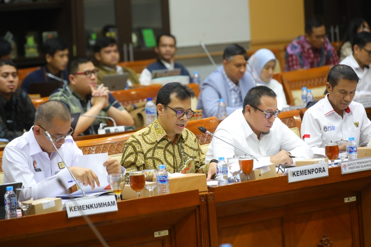 Hadir dalam raker ini, Deputi Peningkatan Prestasi Olahraga Surono, Staf Ahli Bidang Hukum Samsudin, Staf Khusus Percepatan Inovasi Pemuda dan Olahraga Hasintya Saraswati, Staf Khusus Hukum dan Kepatuhan Tata Kelola Alvin Saptamandra, Tenaga Ahli Bidang Potensi Pemuda dan Dispora Hamdan Hamedan. Nampak pula Sekjen PSSI Yunus Nusi, Coach Indra Sjafrie serta Ditjen AHU Kemenkumham Cahyo Rahadian Muhzar. (ben)