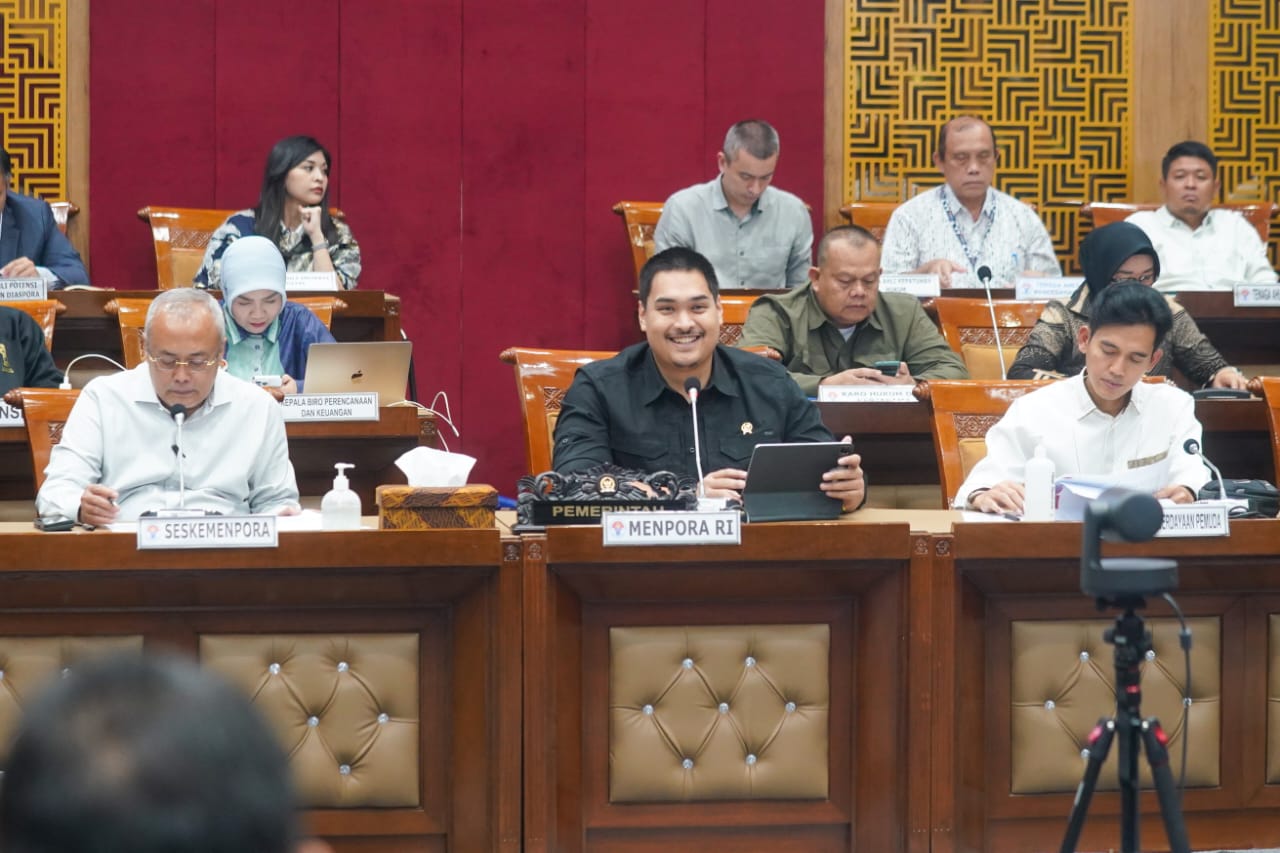 Jakarta: Menteri Pemuda dan Olahraga Republik Indonesia (Menpora RI) Dito Ariotedjo beserta jajaran Kemenpora mengikuti rapat kerja (raker) dengan Komisi X DPR RI, Selasa (19/3) siang. Bertempat di ruang sidang Komisi X, Senayan, Raker dipimpin Wakil Ketua Komisi X DPR RI Dede Yusuf, dihadiri anggota-anggota komisi.
