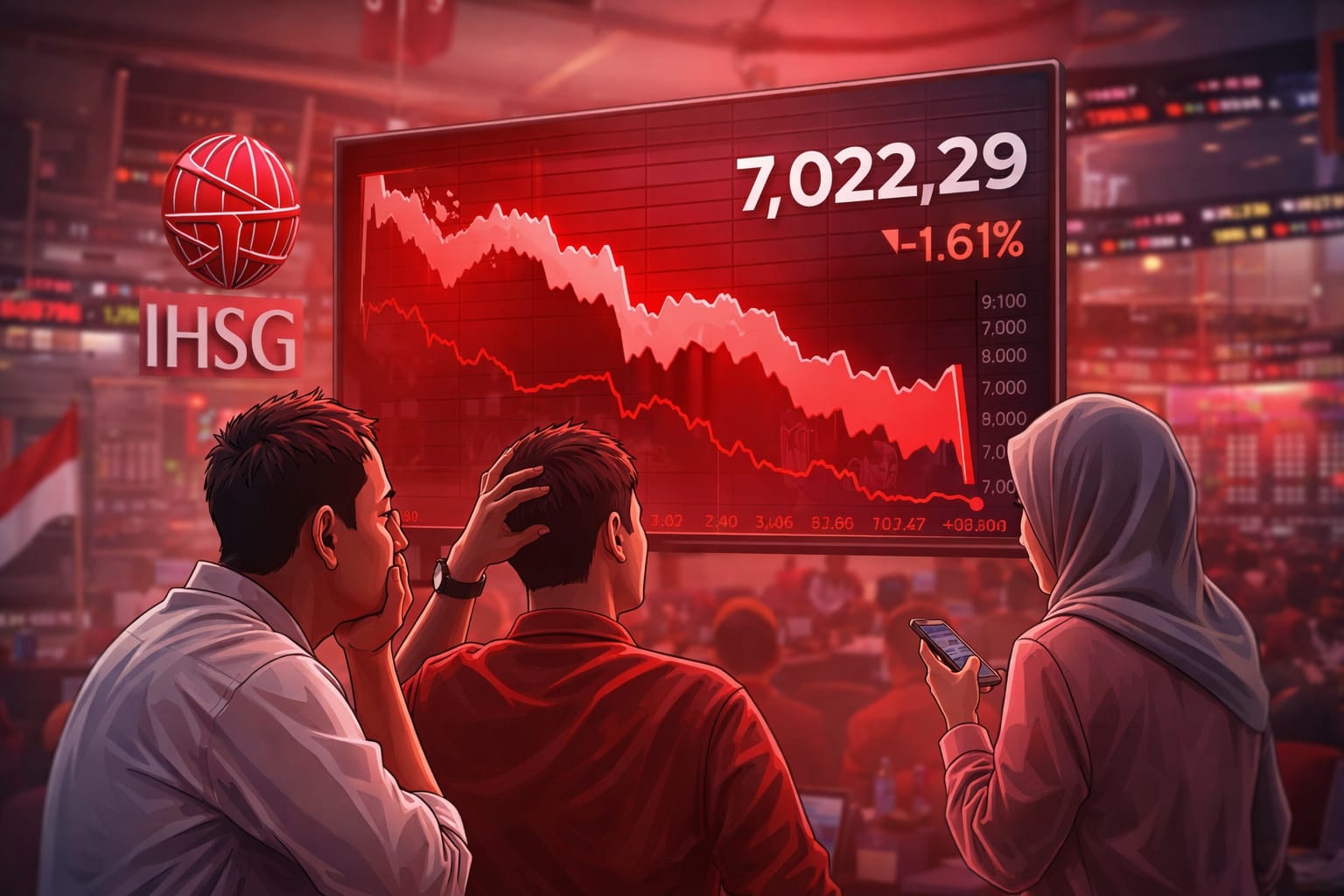 Pada perdagangan harian, IHSG dibuka dengan tekanan yang cukup tajam hingga sempat menyentuh level sekitar 6.925. Namun setelah itu indeks perlahan mencoba melakukan pemulihan dan bergerak fluktuatif di kisaran 7.000–7.040, sebelum akhirnya bertahan di area 7.020-an hingga akhir sesi.